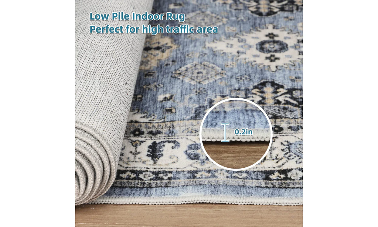 - [Soft Low-Pile Throw Rug] Our throw rugs are made of durable synthetic fiber polyester, not only ultra-soft but also stain resistant. 0.2-inch piles allows for convenient placement in entryways, underneath furniture, perfect for heavy traffic area in your home.
